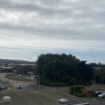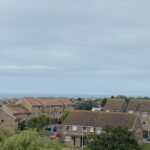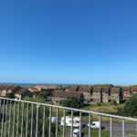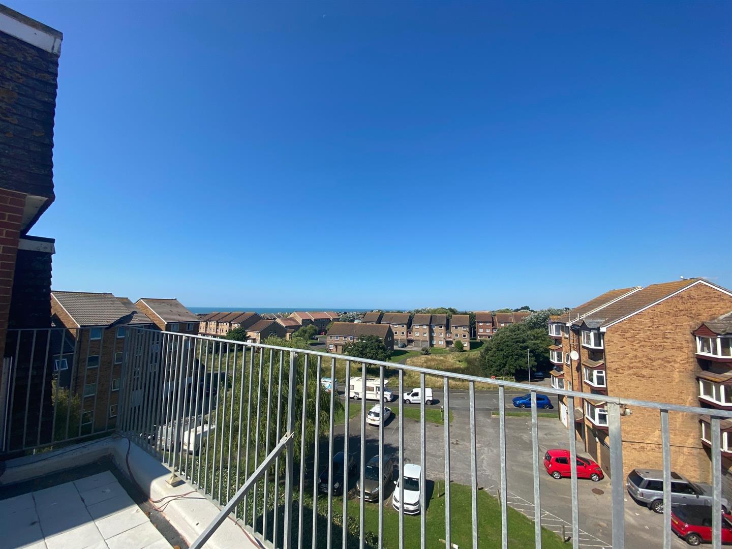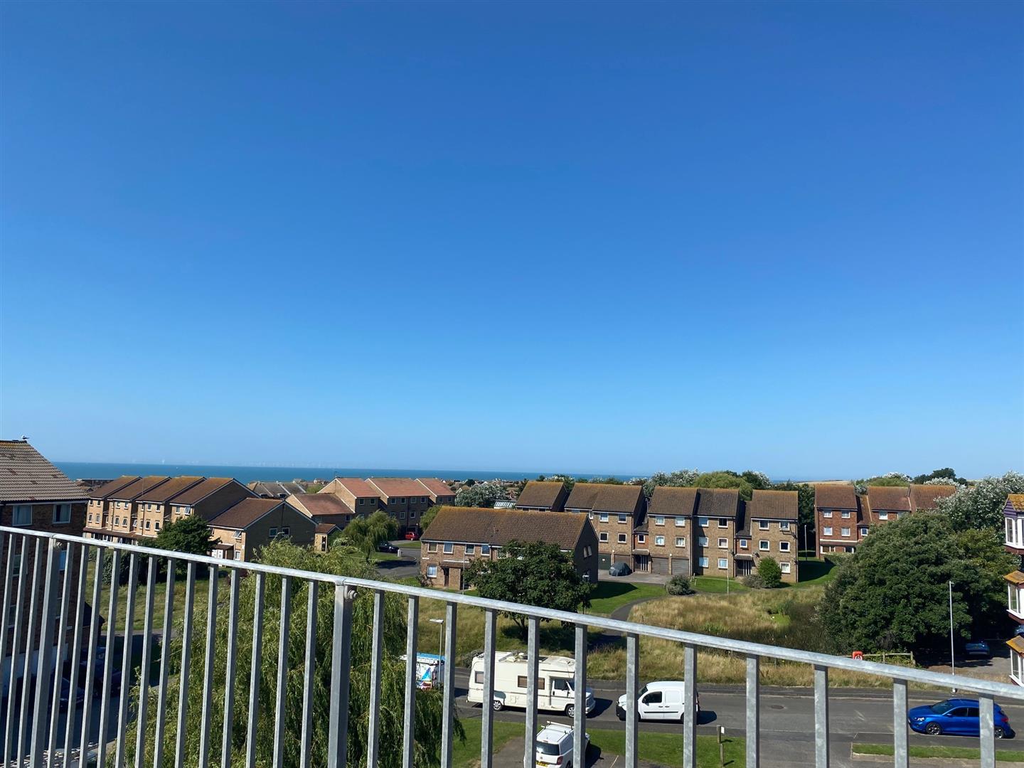 Carpet, radiator, window with distant sea views, alcove storage space.