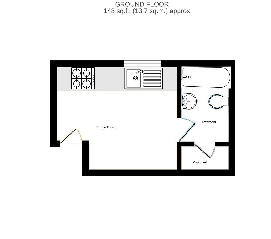 Studio Room 3.9m x 3.3m (12'9" x 10'9")