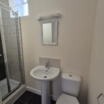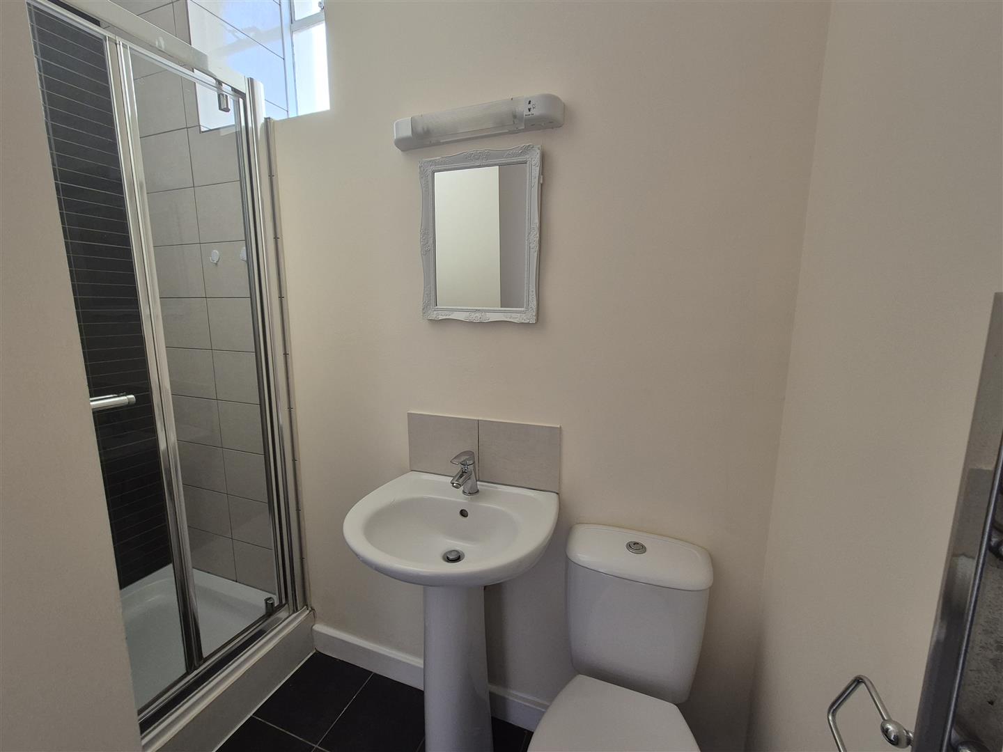 Tiled flooring, heated towel radiator, shower cubicle, basin, w/c, mirrored wall unit, window to side and cupboard housing hot water cylinder and electric boiler.
