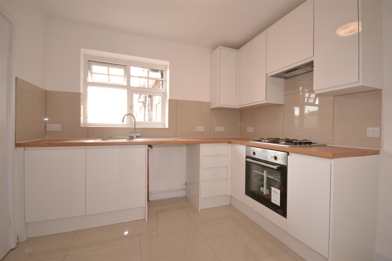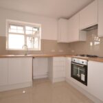 Range of wall and base units with worktop over, stainless steel sink drainer and mixer tap, electric oven and gas hob, space and plumbing for washing machine, space for freestanding fridge freezer, UPVC window, two larder style cupboards one housing boiler.