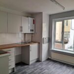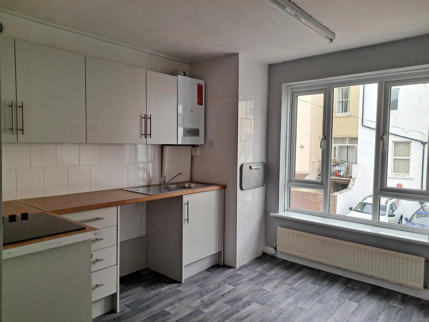 Range of wall and base units, inset sink unit with worktop surface. Built in oven and hob. Space for washing machine. Tiled splash back. Built in cupboards. Wall mounted boiler. Double glazed window.
